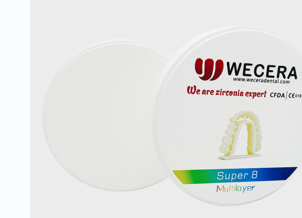 ওয়েসেরা সুপার ৮ মাল্টিলেয়ার জিরকোনিয়া ব্লক একটি উন্নত ডেন্টাল উপাদান যা বিশেষভাবে আধুনিক ডেন্টাল ল্যাবরেটরি এবং ক্লিনিকগুলিতে ব্যবহারের জন্য ডিজাইন করা হয়েছে।একটি নামী চীনা নির্মাতার পণ্য হিসাবে, এই প্রাক-ছায়াময় জিরকোনিয়াম ব্লকটি 98 মিমি ব্যাসার্ধ এবং 900 এমপিএ এর একটি অসাধারণ নমন শক্তির গর্ব করে, দাঁতের পুনরুদ্ধারে স্থায়িত্ব এবং নির্ভরযোগ্যতা নিশ্চিত করে। সিই, এফডিএ এবং আইএসও 13485 দ্বারা প্রত্যয়িত,Wecera Super 8 কঠোর আন্তর্জাতিক মান পূরণ করে, যা এটিকে বিশ্বব্যাপী দাঁতের পেশাদারদের জন্য একটি বিশ্বস্ত পছন্দ করে।