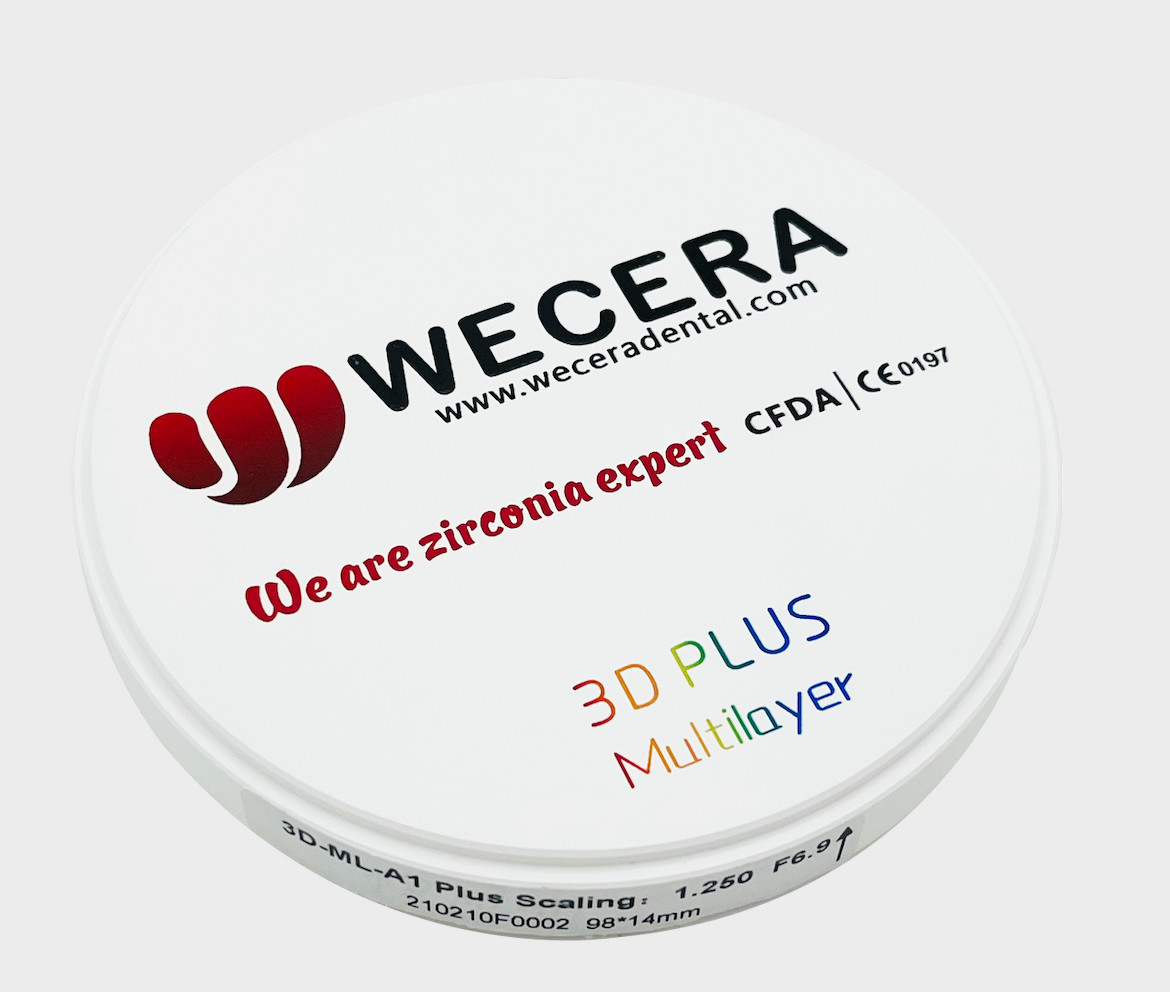 The WECERA 3D Plus Multilayer is a premium dental material designed specifically for professional dental labs and milling centers. Originating from China, this cutting-edge 3D Multi-Layered Zirconia product offers exceptional versatility and reliability for a variety of dental restorations. Compatible with advanced milling machines such as Roland and VHF Imes-icore, the WECERA 3D Plus Multilayer ensures precise and efficient processing, making it an ideal choice for dental professionals aiming for high-quality outcomes.